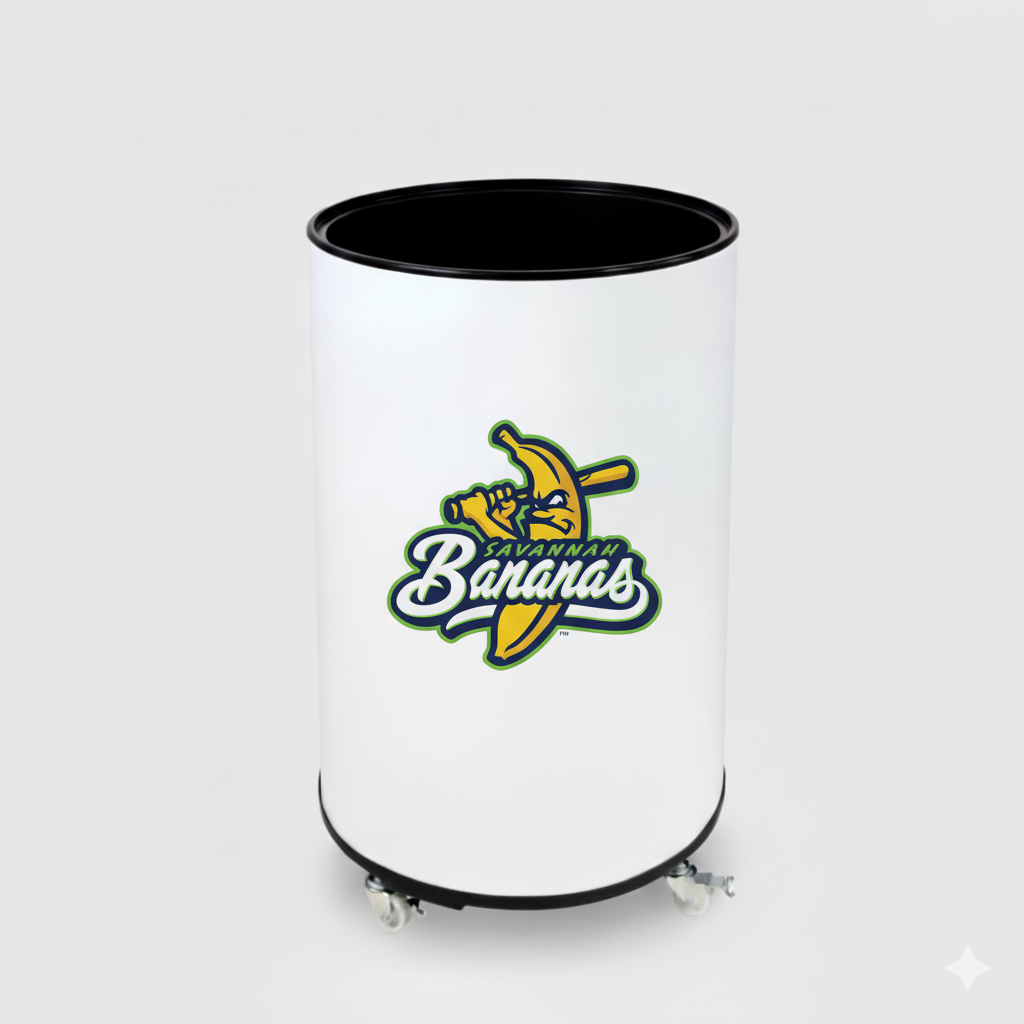 Rolling bins for giveaways, fan games, and more. Customize with your team's full-color logo.